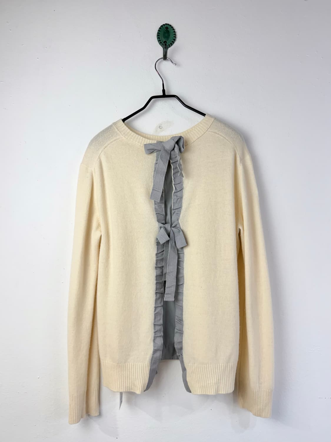 LANVIN en Bleu ribbon knit 랑방의 세컨 라인 LANVIN en Bleu 부드러운 색감과 텍스처의 바디에 리본 테이핑 디자인 약간의 사용감 외 준수한 컨디션입니다. 어깨 41 가슴 48 총장 57 팔 60 (cm)