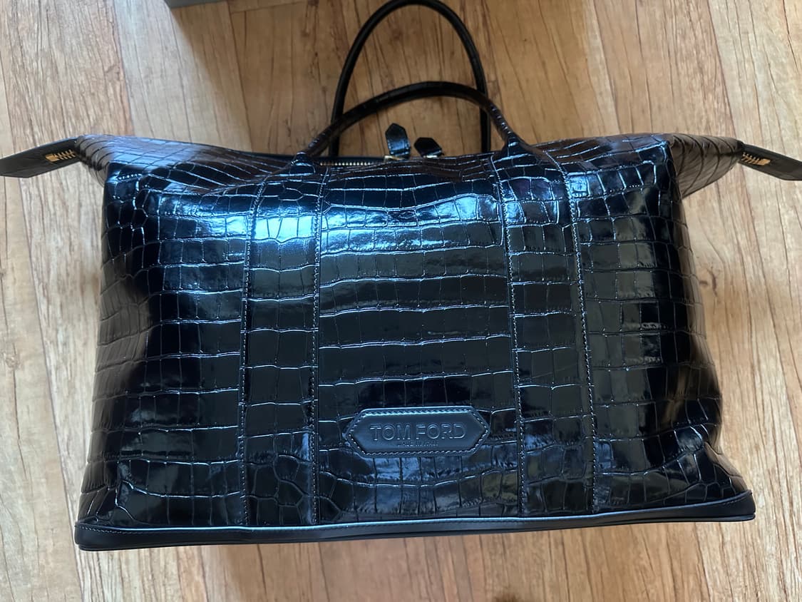 사용기간 1달. 실 사용시간 2시간 수준인 새 가방 입니다. 저번달에 부산 신세계 프리미엄 아울렛에서 구매하였으며 360만원에 구매하였습니다. 카프 스킨 소재의 고급스런 위켄드 가방입니다. 톰포드 특유의 고급스런 분위기의 가방으로 여행 및 평소 운동 가방 으로도 쓸 수 있는 쓰임새 좋은 가방 입니다.