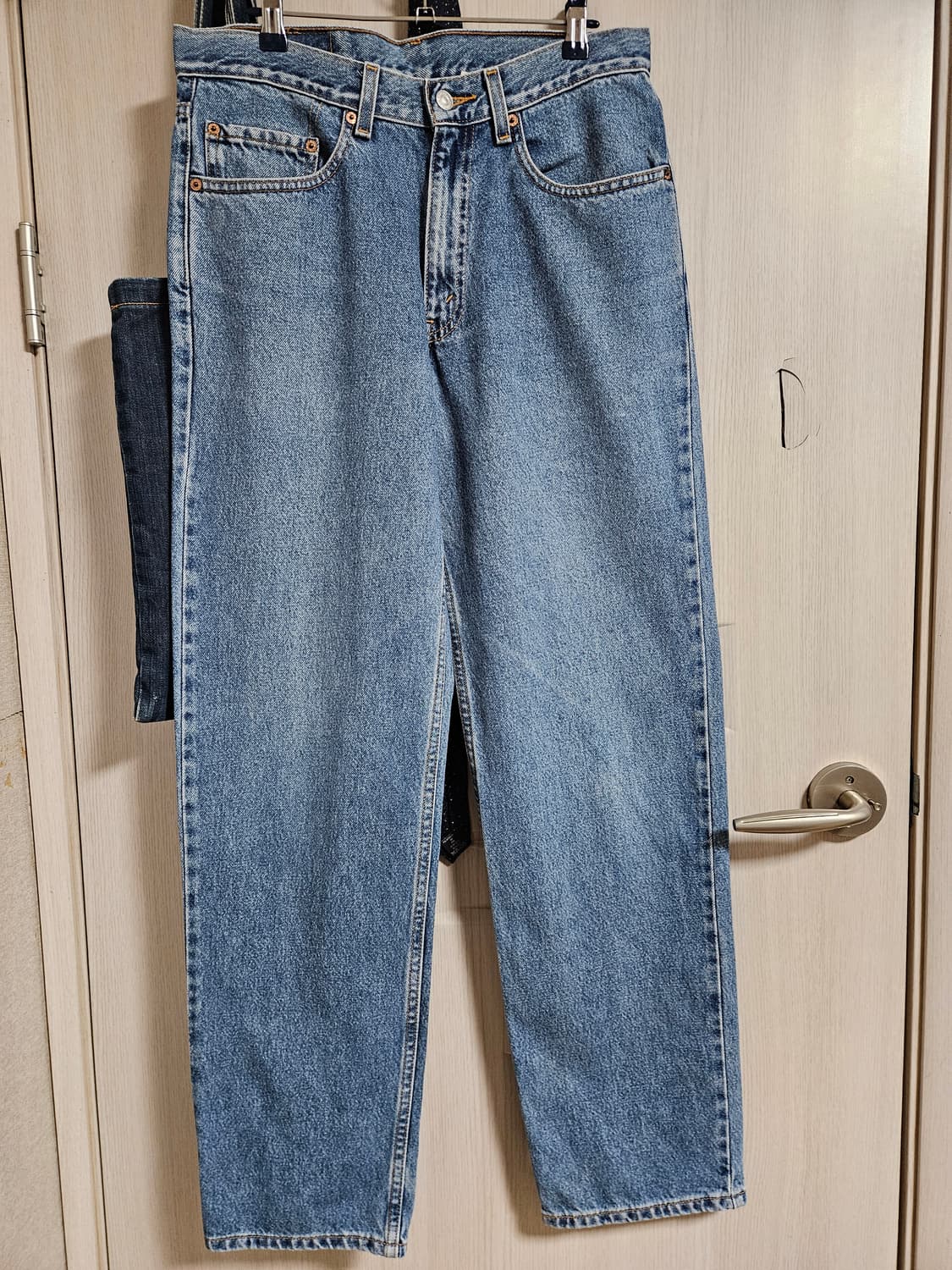 리바이스 550 03년 생산 상태와 실측은 사진에 나와있습니다. 깔끔한 컨다현과 현재 계절과 잘 어울리는 색감.