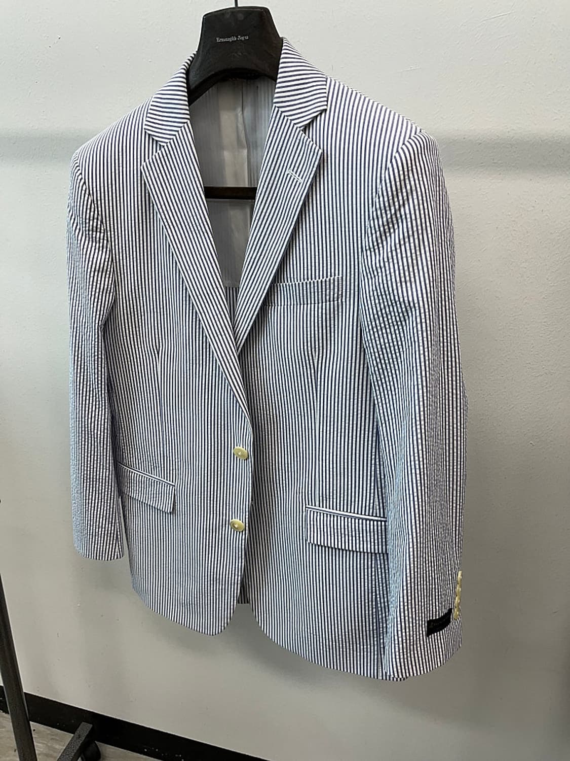 브룩스브라더스 사이즈 95 권장 총장 76 가슴단면 51 정품 브룩스브라더스 시어서커 자켓 라이트블루 스트라이프 시어서커 인기모델입니다 상태 최상급
