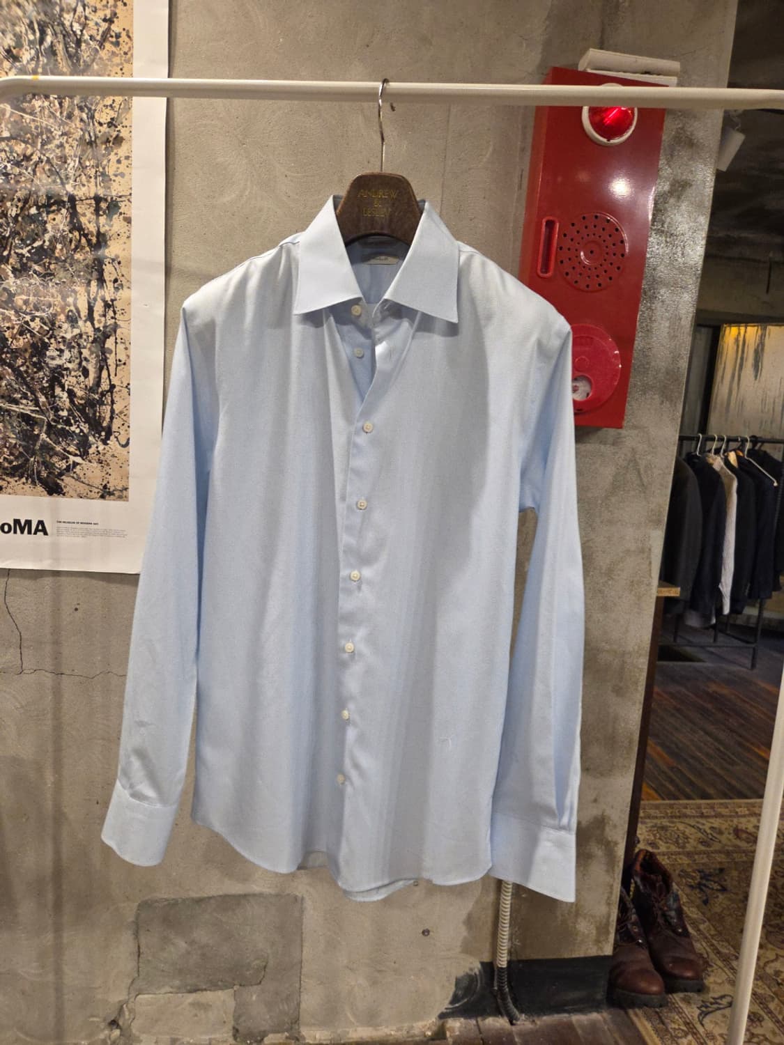 은근한 광택감이 도는 스카이블루색감으로 연출한 수트서플라이의 드레스셔츠입니다. 사이즈 국내 100 추천합니다. 감사합니다.