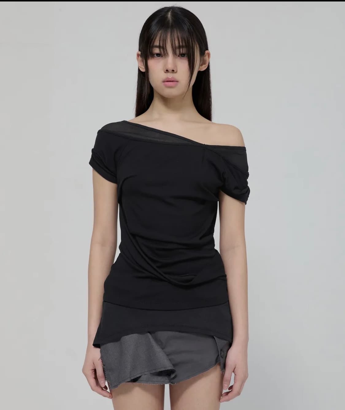 셋업이엑이 BABY WIDE NECK TOP / BLACK