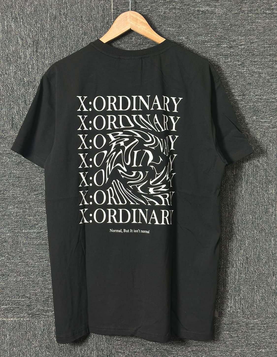 흰색 X:ORDINARY 반팔 티셔츠 52사이즈 새상품입니다. 등 쪽에 파란색 X:ORDINARY 로고가 반복적으로 프린팅되어 있습니다. "Normal, But It isn't normal" 문구가 포인트입니다. 별도 문의 없으시면 바로 안전결제 부탁드려요!