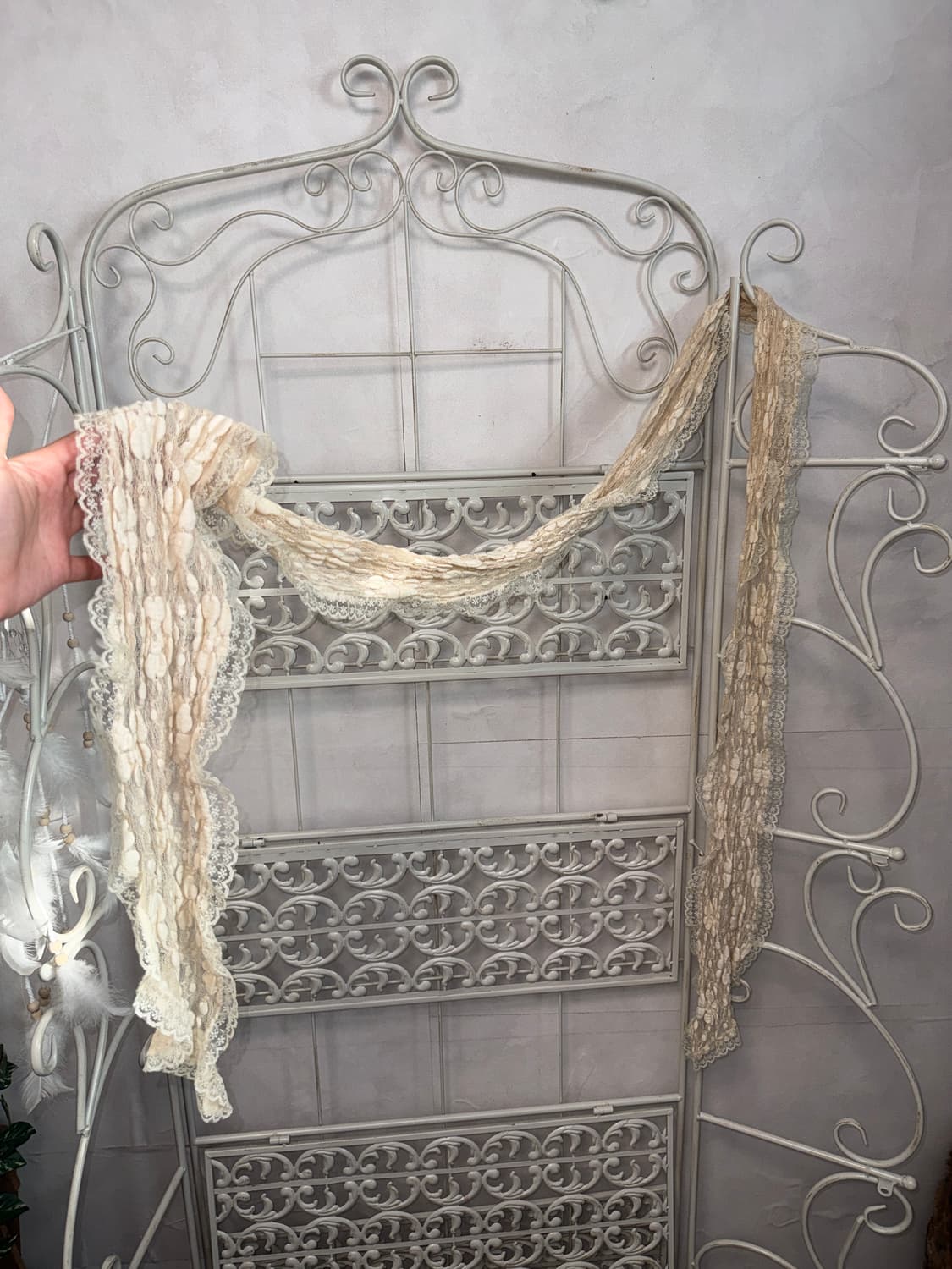 Beige floral lace scarf