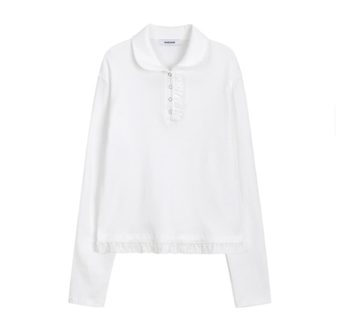 round collar frill long t-shirt (white)