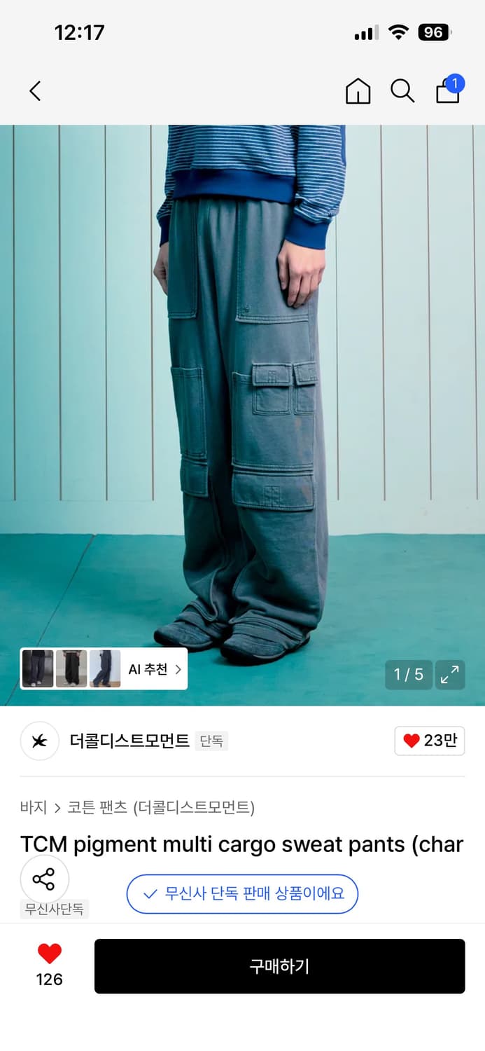 더콜디스모먼트 피그먼트 멀티 카고 스웻 팬츠 챠콜 s