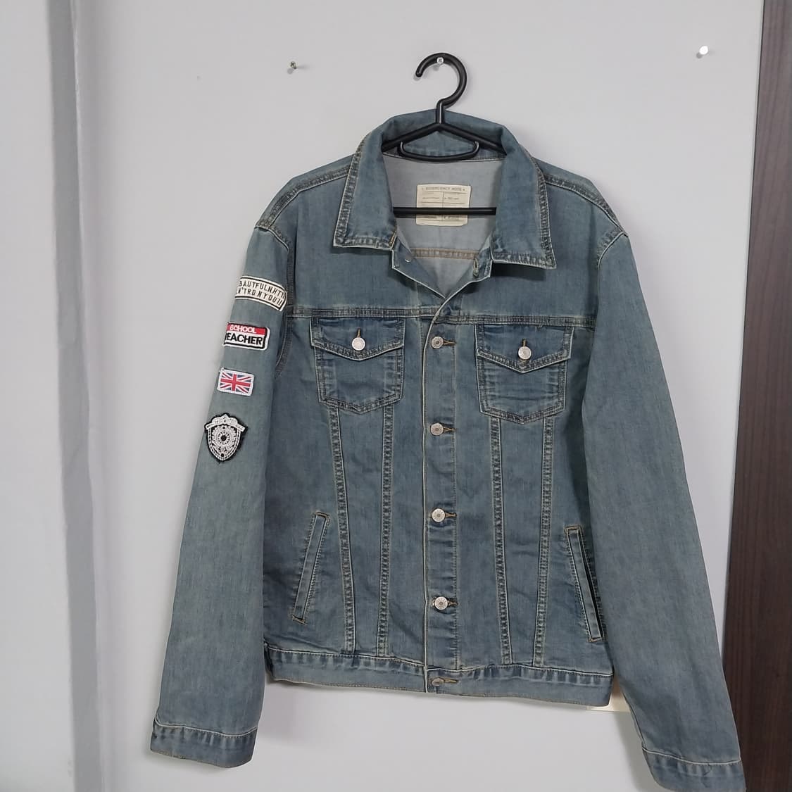 춘추용 청 데님 소재 남자 슬림핏 100 사이즈예요 깔끔한 디자인으로 어디에나 잘 어울려요 사진에서 보이는 그대로의 제품입니다 총장 68 가슴반품 50 어깨 47 팔길이 66