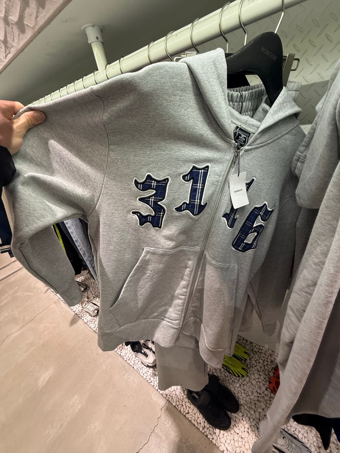 Yardsale 체크 와플 후드 그레이
