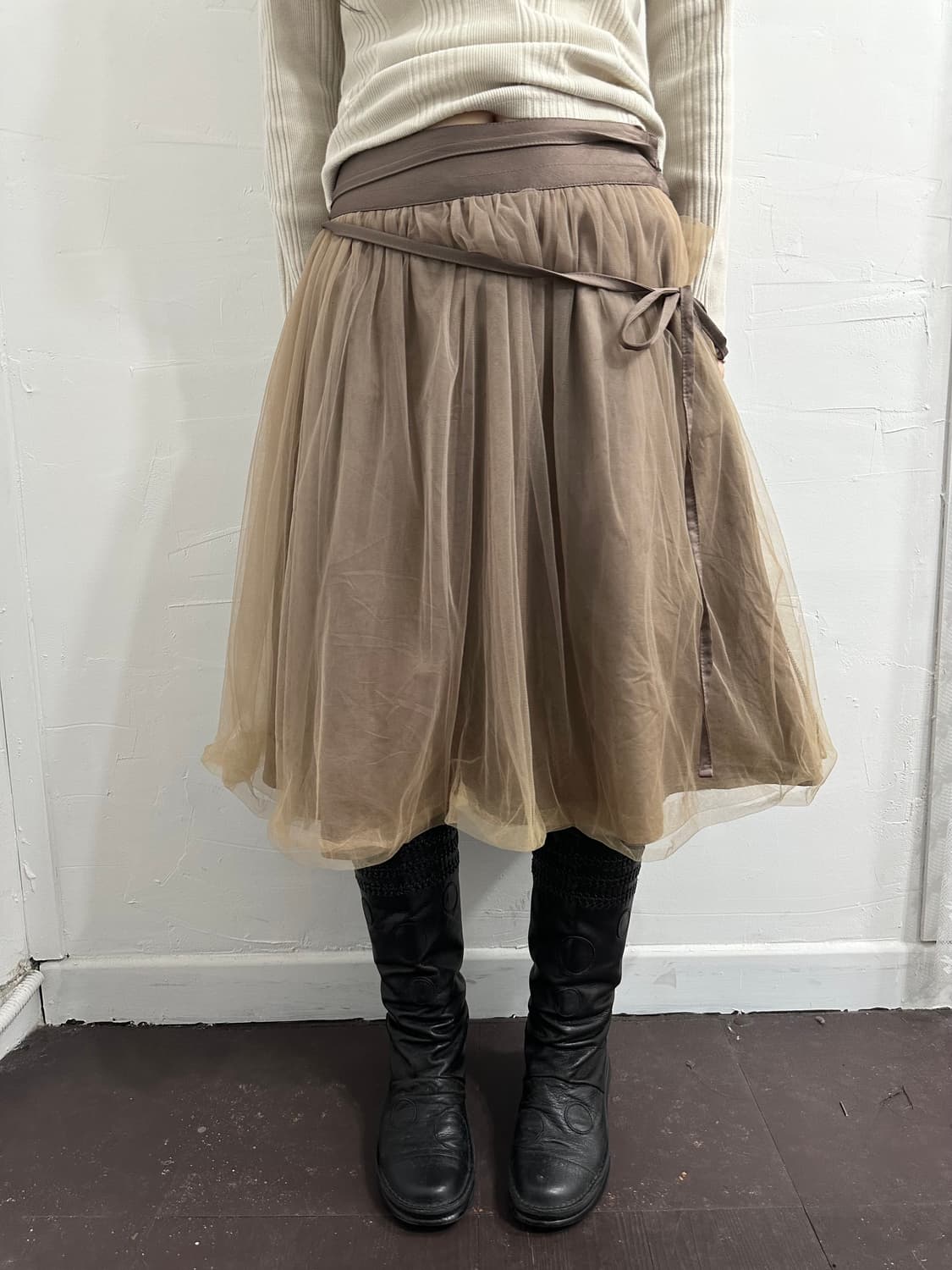 빈티지 웜 버터 레이스 하프 란제리 스커트