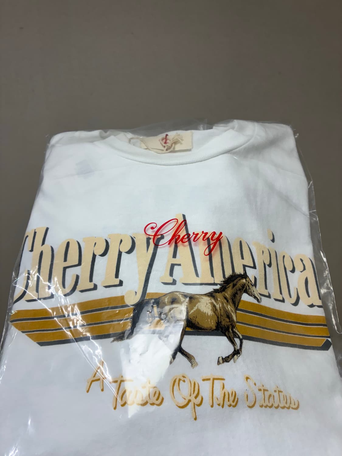 cherry la 26시즌 티셔츠입니다. 흰색 바탕에 말 그림이 프린팅 되어있습니다. 사이즈는 M이고, 남성분들께 추천드려요. 별도 문의 없으시면 바로 안전결제 부탁드려요! 오염 및 하자 없는 새상품급 M size 가슴62 어깨52 총장68