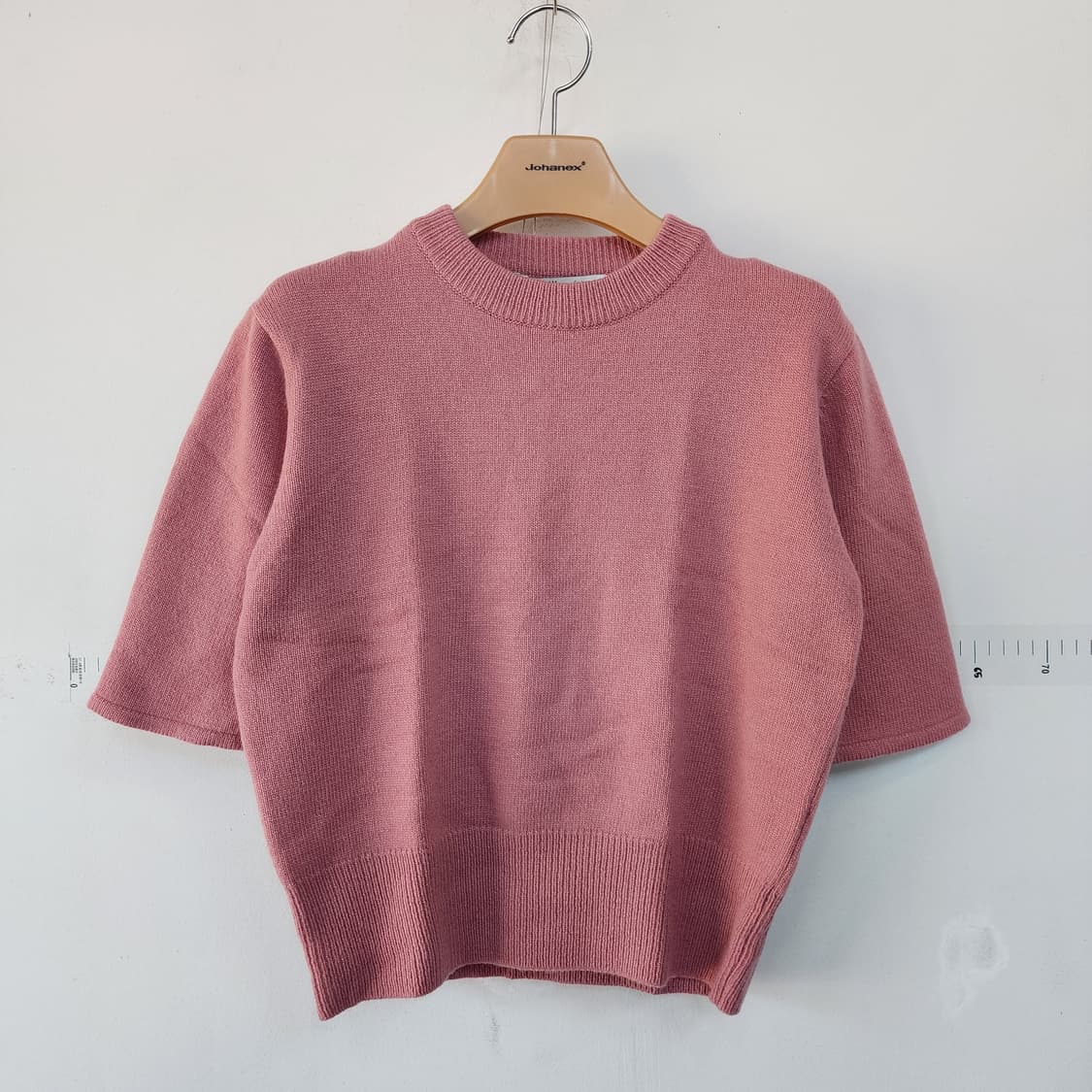 드실루엣 핑크색 반팔 니트 스웨터
