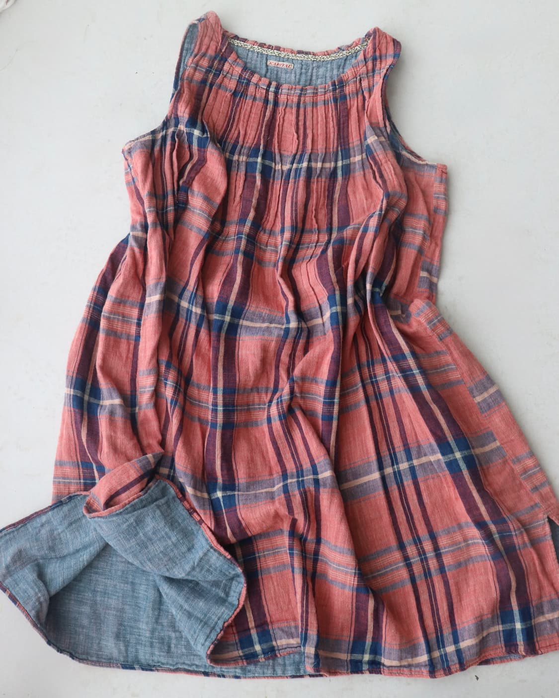 Kapital은 1985년 일본에서 시작된 브랜드로 일본식 장인 정신과 현대적인 빈티지 감성이 믹스된 감각적인 데님을 기반으로 다양한 디자인을 선보이는 브랜드입니다. 다양한 위트있는 그래픽과 해체, 재조합을 통한 아트적인 디자인 감각으로 큰 사랑을 받고 있으며 한 벌의 옷에 담긴 수공예적 디테일과 스토리, 일본 특유의 감성이 한데 어우러져 탄탄한 마니아층을 형성하였습니다. Size (cm) 총장: 87 / 어깨: 30 / 가슴: 57 워싱된 듯 빈티지한 코랄 핑크 베이스 위에 블루 컬러의 체크 패턴이 어우러진 Kapital의 튜닉 드레스를 소개합니다. 네크라인에 잔잔한 셔링이 더해져 자연스럽게 퍼지는 실루엣을 만들어내고 하단의 슬릿이 들어가 활동에 지장없는 편안한 착용감을 줍니다. 폭닥폭닥, 기분 좋은 감촉의 소재로 적당한 두께감을 구성하며 사랑스러움을 극대화하고 단독 착용은 물론 다양한 이너와 하의를 레이어드한 스타일링도 잘 어우러집니다. 캐피탈 특유의 빈티지 무드가 가득 표현된 제품으로 디자인 자체는 클래식하나 컬러의 조합, 옷의 만듦새와 디테일이 남다른 제품입니다. 다양한 계절에 대응 가능한 아이템으로 개인의 취향을 반영한 자유로운 스타일링으로 앞으로 오래 즐길 수 있는 제품입니다. ⋆빈티지 상품의 특성상 구매 후 교환, 반품이 불가하니 신중한 구매 부탁드립니다. ⋆IG @quai.vtg