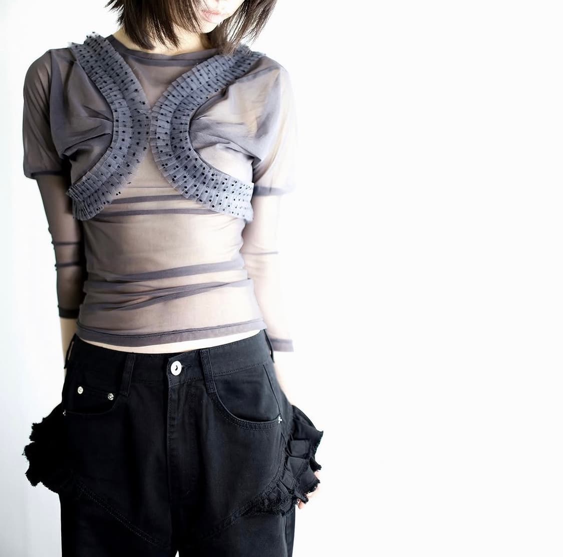 구해요) 울리카상투스 플리츠 메쉬 탑 블루