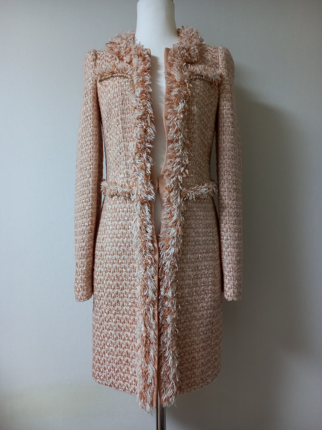 .드라이 완료.55사이즈.기장84.톤다운 귤색과 아이보리의 조합.허리라인이 들어간 슬림한 라인.골드스틸 장식 깨끗해요.얇지않아요.후크로 잠그는 싱글 자켓.중고감 있고 이 점 공지했어요. ■직거래 않함.환불 에눌 교환 않됨.에눌문의 한번만으로 바로 차단.입금후 절대 환불않됨.