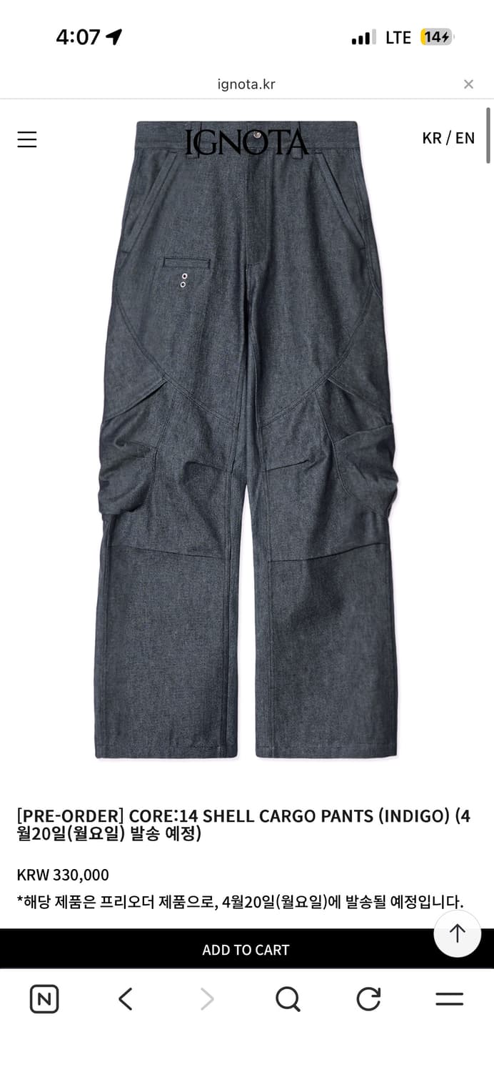 (구매) 이그노타 CORE:14 SHELL CARGO PANTS