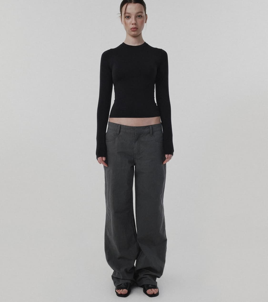 Suade semi wide pants charcoal gray
