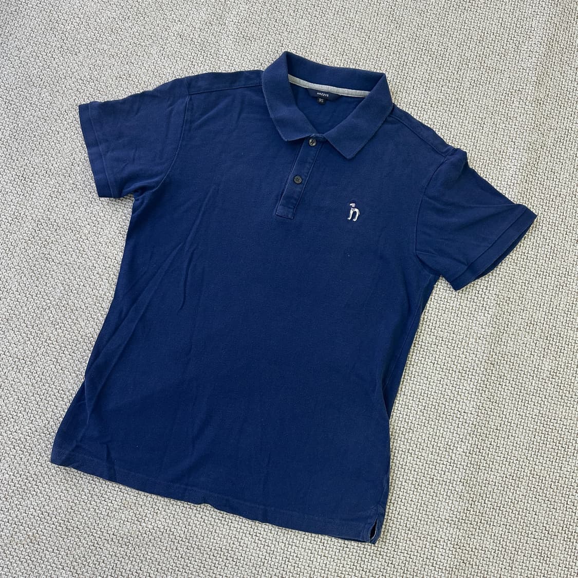 • 헤지스 Hazzys 로잉 로고 반팔 카라 티셔츠 S ~ M 네이비