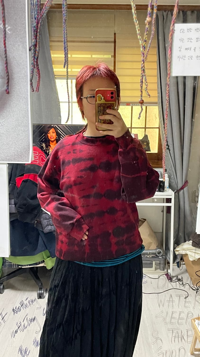 사이즈 M 이구요, 빈티지에요. 빨강 ~ 검정 타이다이 맨투맨입니다. 👠15,000원에 줄게요, 오케이 쿨??