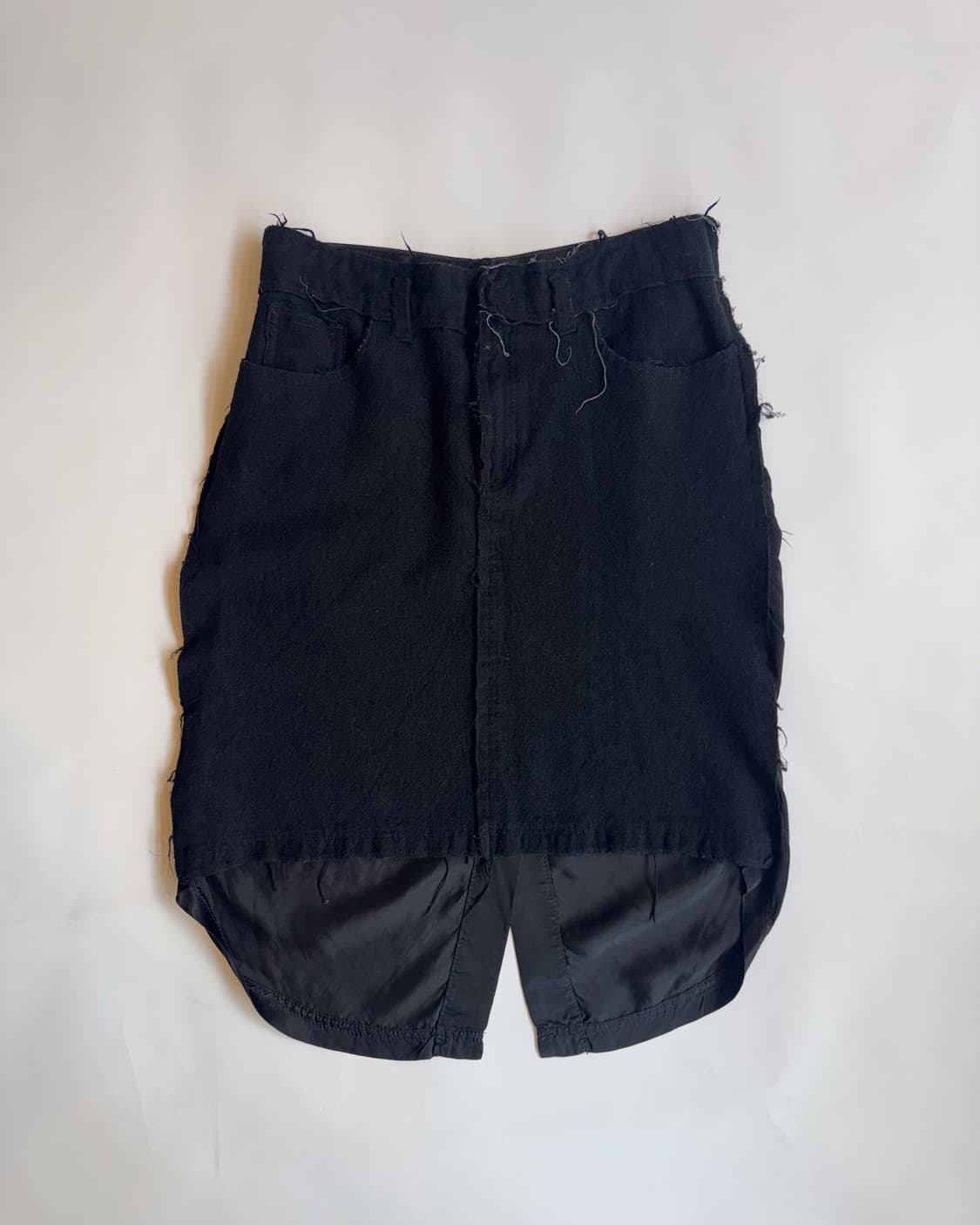 꼼데가르송 트리코 라인의 독창적인 텍스처와 비대칭적인 컷팅이 돋보이는 스커트입니다. 울과 나일론 혼방 소재로 제작되어 탄탄한 실루엣과 아방가르드한 무드를 동시에 느낄 수 있습니다. Size: 허리 39.5 기장 앞 50 뒤 69 Condition : A