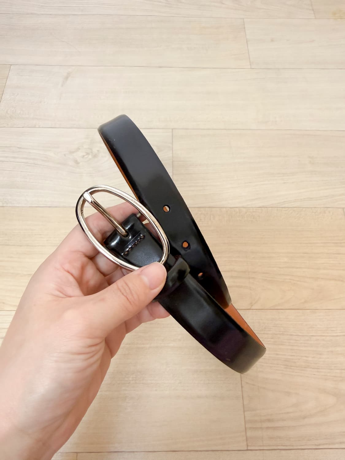 매끈한 가죽의 랄프로렌 가죽 벨트 시착만 해봤던 거의 새제품 보관 문제로 가죽 겉면에 자잘한 기스가 좀 있습니다. 색상: 진한 다크 브라운 (사진이 블랙처럼 나오는데 블랙 아님) 사이즈: s 폭: 2.5 벨트 가죽길이: 90 70 지점부터 1인치 간격으로 구멍 5개
