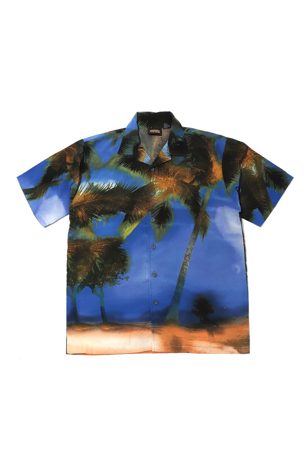 1088 ODO 폴리 하와이안 셔츠 size L SIZE 총길이 : 79 어깨 : 54 가슴 : 62 팔 : 28 INFOMATION 여름철 휴양지의 무드를 담아낸 **ODO(오도)**의 하와이안 오픈 칼라 셔츠입니다. 선명한 블루 스카이 컬러와 해질녘의 오렌지 톤이 어우러진 배경 위에 야자수 실루엣이 올오버 프린트되어 있어, 착용만으로도 시원하고 자유로운 분위기를 선사합니다.