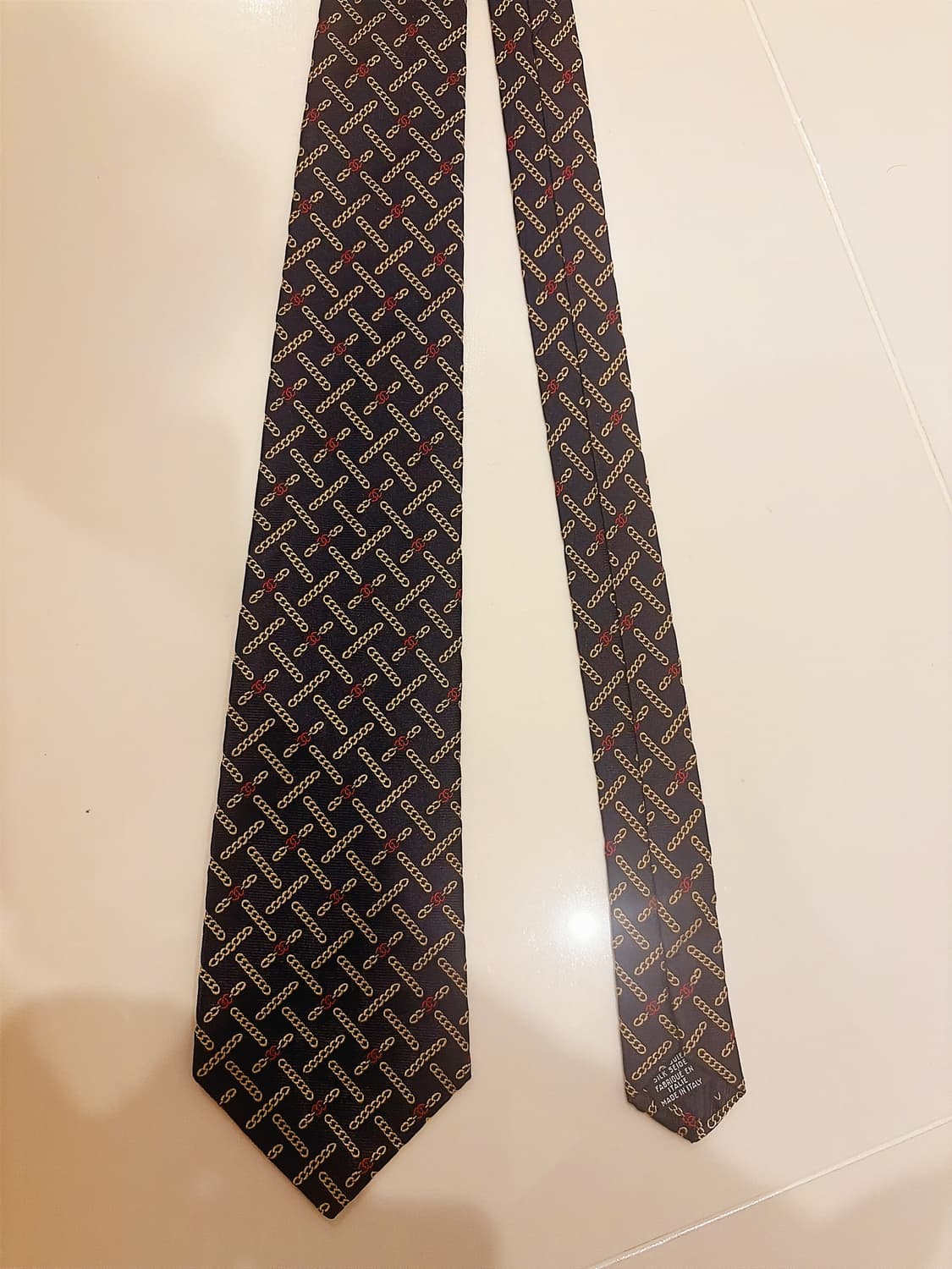 S급으로 골드체인 달려있으며 실크소재로 새상품과 같은 컨디션 유지입니다. 2025년 4월 구매후 착용X 대검 사이즈 9cm~10cm