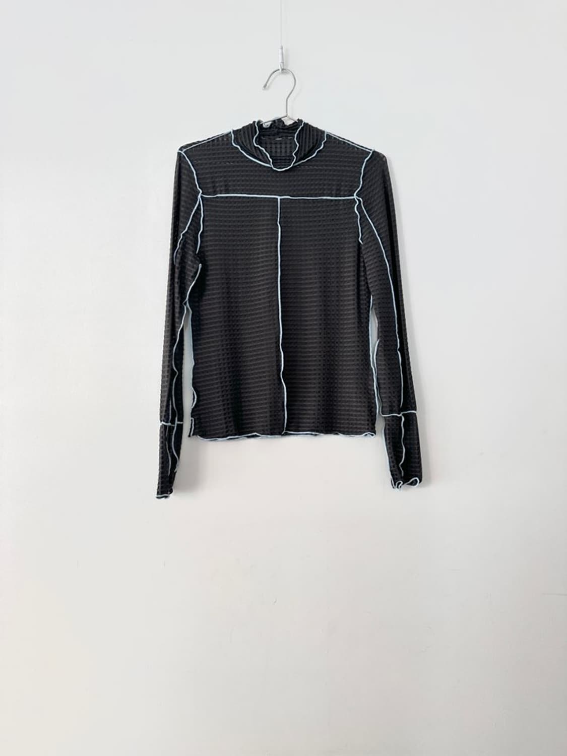- 잔잔한 체크 패턴 & 하늘색 트리밍 쉬어 탑 - 하이넥 구조 , 다양한 레이어드 할용도 아이템 - 신체에 맞게 늘어나는 신축성 있는 타입 - 엘라스테인 92 폴리미디아 8 - 전체적으로 양호한2 상태 model size : 168cm top 44-55 bottom 26-27 Shoulder : 38cm Chest : 40cm Sleeve : 63cm Length : 58cm