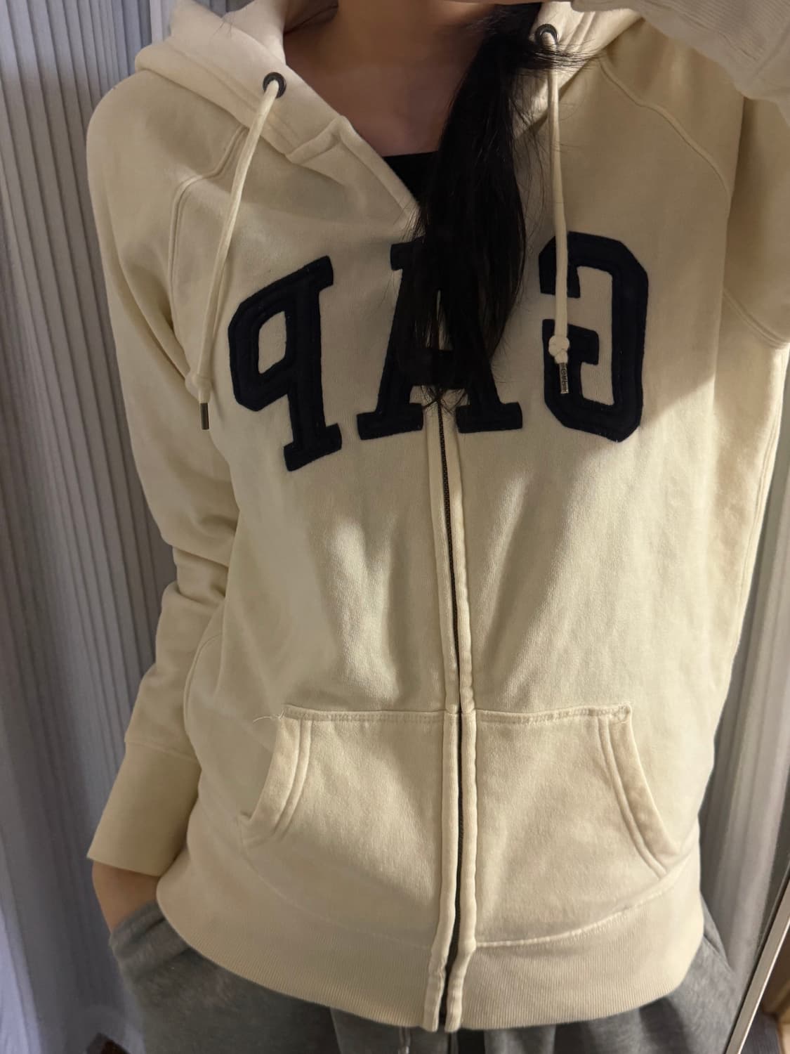 • 갭 Gap 스펠 로고 후드집업 그레이