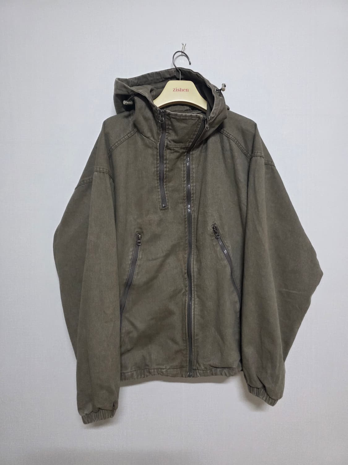 카키 청 후드집업