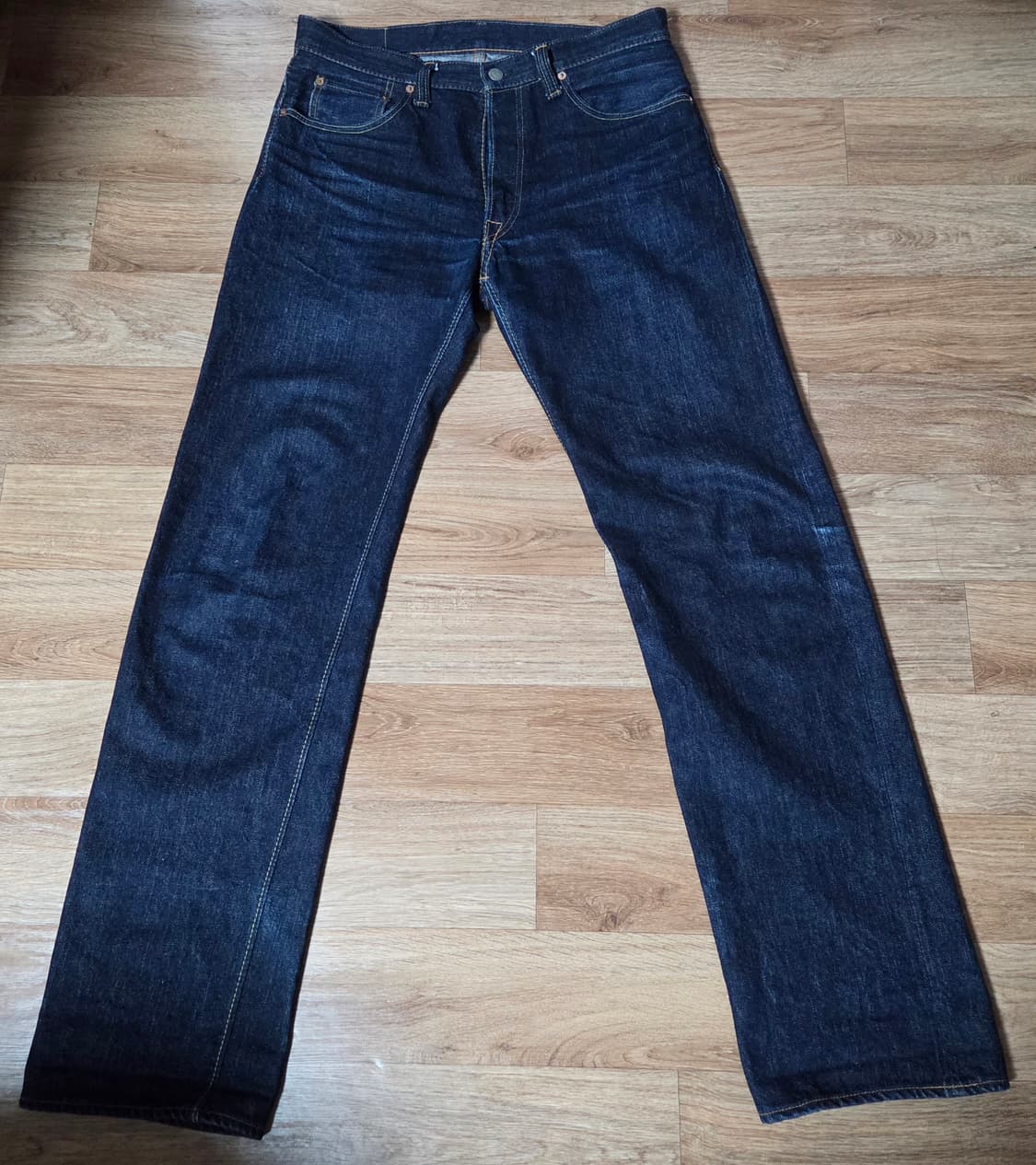 처음 샀을 때 찬물 소킹 1회하고 5번정도 입었습니다. 사진 보이시는대로 이제 막 페이딩 시작되고 있고 크게 워싱이 생긴거 없습니다. 사진처럼 사타구니쪽에 주름은 있지만 워싱이 많이 생기거나 하지는 않았습니다. 사진 보이시는대로 가죽택도 상태 좋습니다. 수선 안 했습니다. 네고는 받지 않고 3통 이내 쿨거래해주시면 택배비 포함입니다.