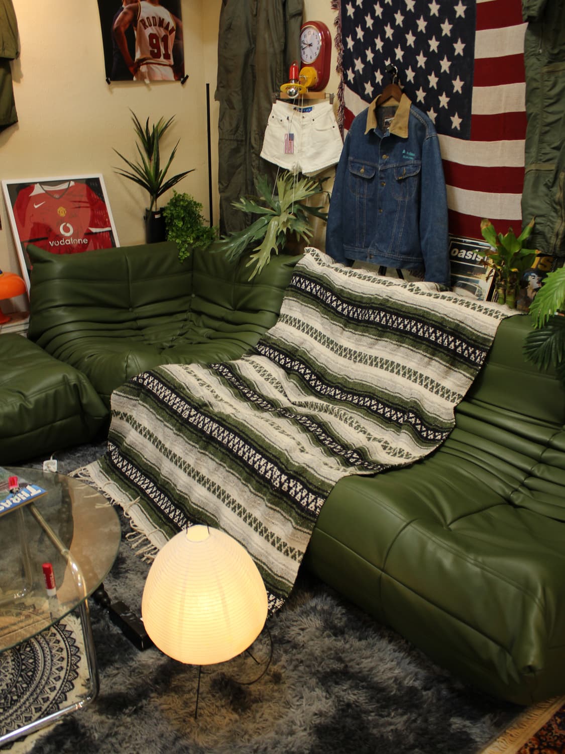 매장 인테리어 중 러그 문의가 많아, 저희 매장에서 가져오는 블랭킷 10개정도를 소개해드리면 어떨까 해서 가져왔습니다. 멕시코 Tlaxcala에서 생산된 제품인데, 이 별 다섯 개 로고가 들어간 탭은 당시 그 지역 생산자 조합에서 나름 "우리 지역 우수 특산물" 급으로 관리하던 모델에 붙던 겁니다. 7080 멕시칸 블랭킷 중에서도 족보가 아주 확실한 녀석이라고 볼 수 있어요 요즘 러그들과 다르게 평평하지 않고 사진을 보면 지그재그 패턴 부분이 평평하지 않고 아주 입체적으로 툭툭 튀어나와 있는대 이게 올드 수직기로 짜서 그렇답니다. 그래서 러그 좀 볼 줄 안다 하시는 분들은 이런 울퉁불퉁한 러그들을 알아줘요 침대밑, 쇼파위, 테이블 아래, 벽면에 걸던 어떻게 둬도 제 몫 하는 녀석입니다. 사이즈 -(cm) 175x114