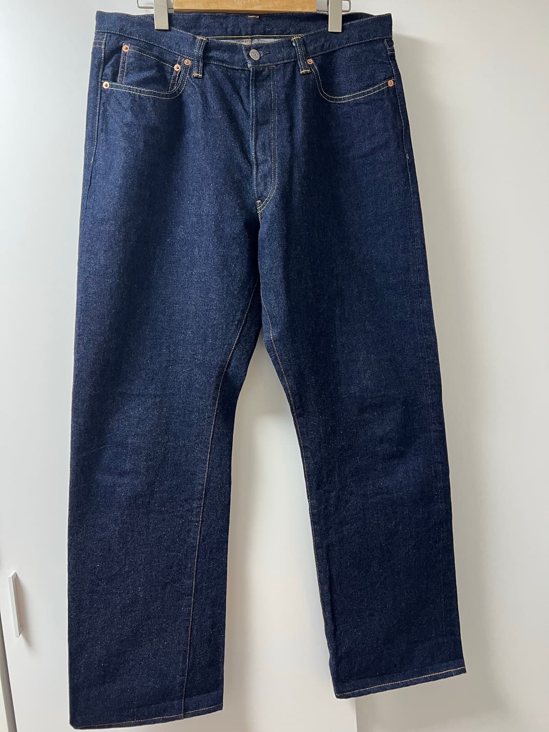 구매후 5회 미만 착용했습니다. 밑단에 약간의 손상 제외 하고는 새상품급의 상태입니다. 디테일러에서 유니온스페셜 43200g 체인기장수선 1회 진행했습니다. 기장 수선 조금만해서 전과 큰차이 없습니다. 와이드 스트레이트핏이어서 36입으시는 분들도 충분히 입으실 수 있을 정도의 사이즈입니다. 허리 45.5 총기장 111 허벅지 35 밑단24 COTTON 100% MADE IN JAPAN