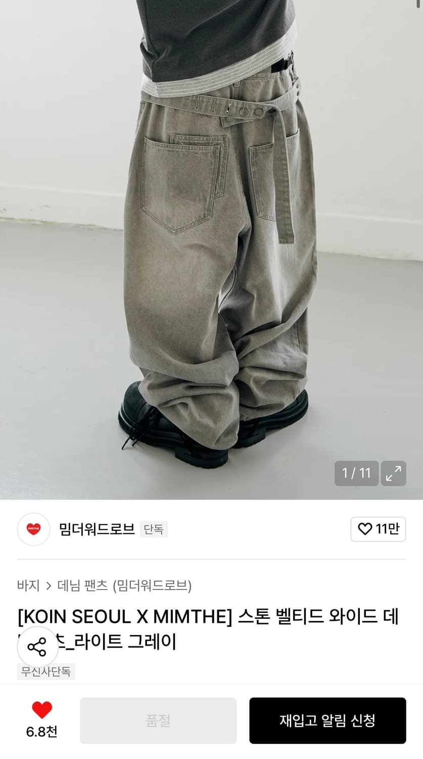 [KOIN SEOUL X MIMTHE] 스톤 벨티드 와이드 데님팬츠_라이트 그레이 사이즈 1사이즈이고 바지는 예쁘고 지금 품절이예용 여자인 저한테는 좀 커서 팔아요ㅜ 실내 착용1회 바지 밑단 깨끗해요! 많이 안입어서 오염 거의 없습니다 상태 진짜 좋아요