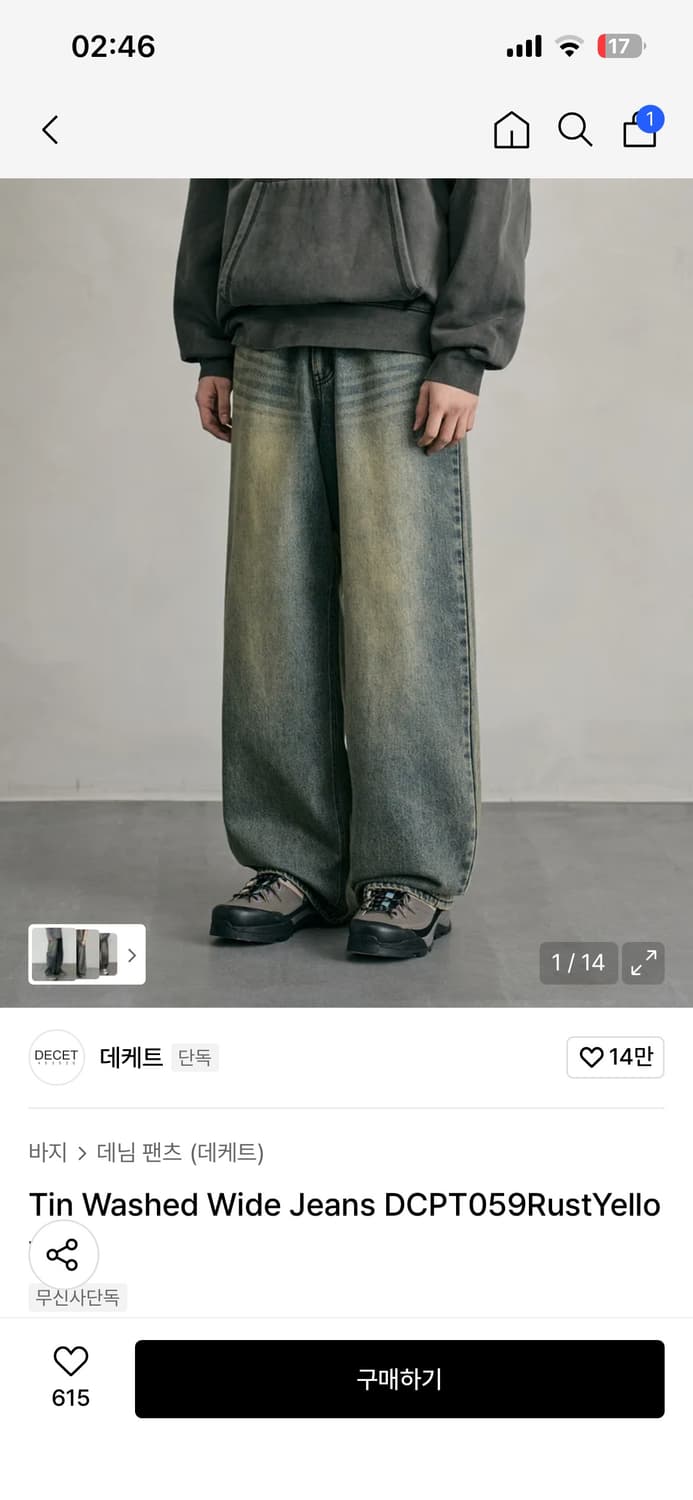 • 무신사 데케트 와이드 데님팬츠 30