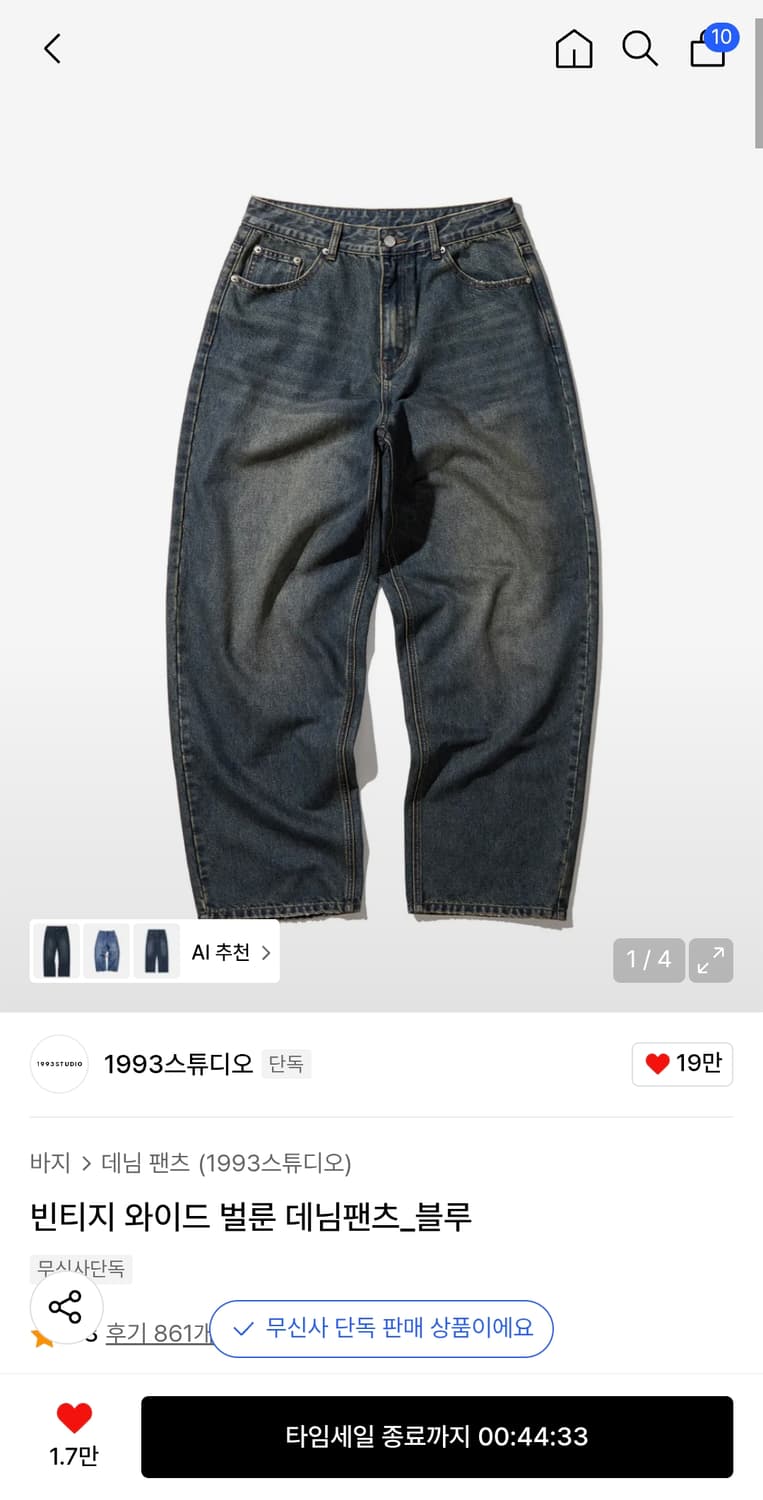 1993스튜디오 빈티지 와이드 벌룬 데님 팬츠 M