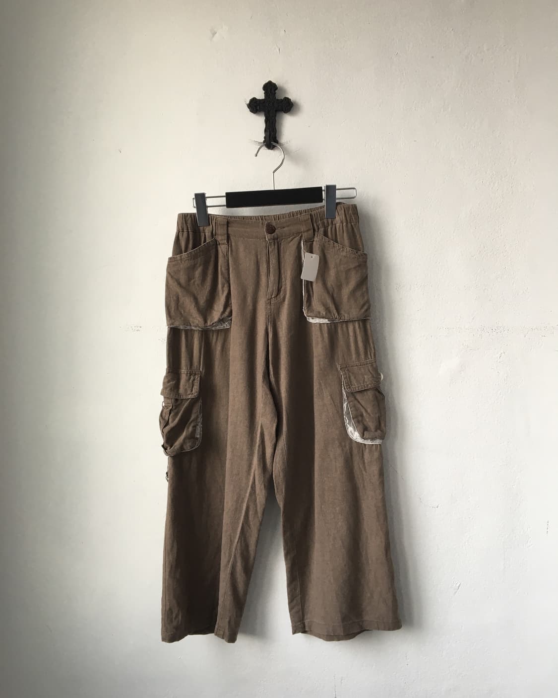 빈티지 본디지 디테일 고동색 브라운 와이드 카고팬츠