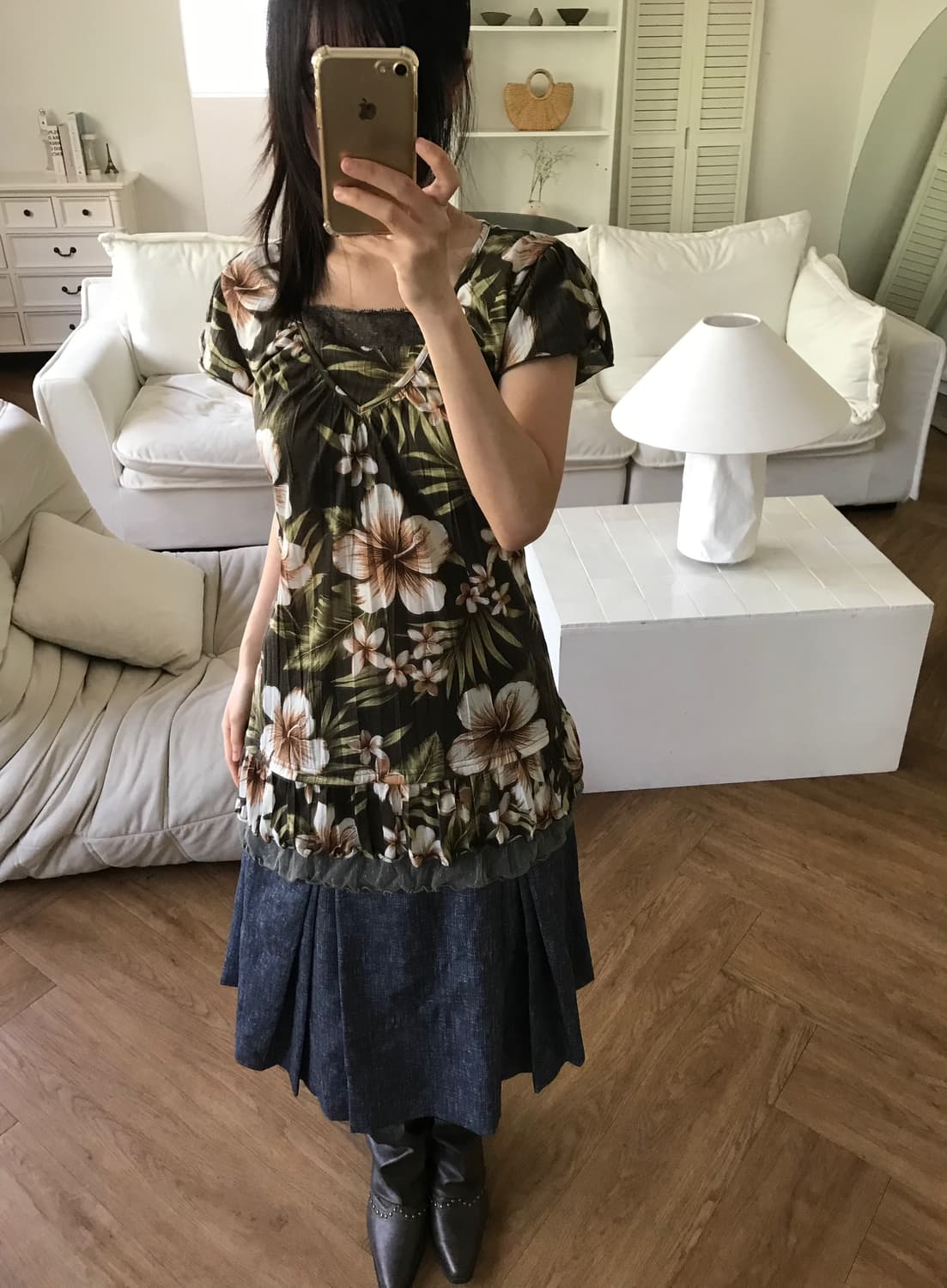 플라워 패턴이 돋보이는 탑은 빈티지한 무드가 매력적인 아이템입니다.