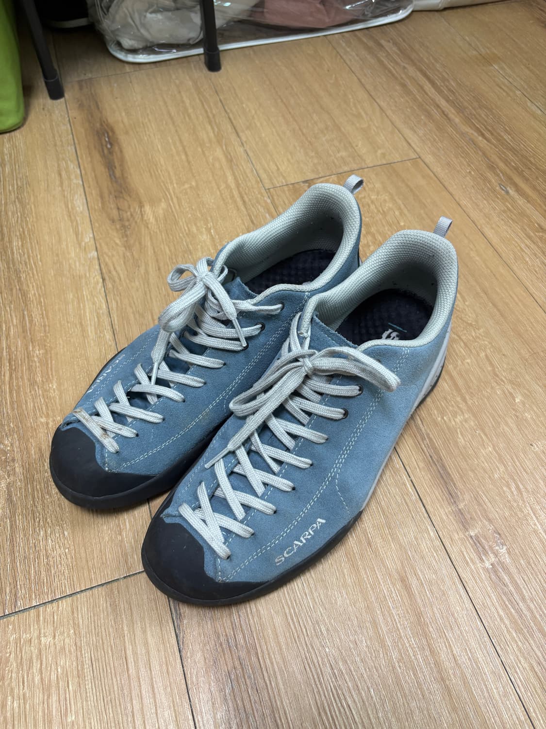 스카르파 모히토 280사이즈 eu 44 새거사서 산행 몇번 해보고 보관 하자 없음, 끈에 흙이 조금 묻었었네요. 상태 좋습니다.