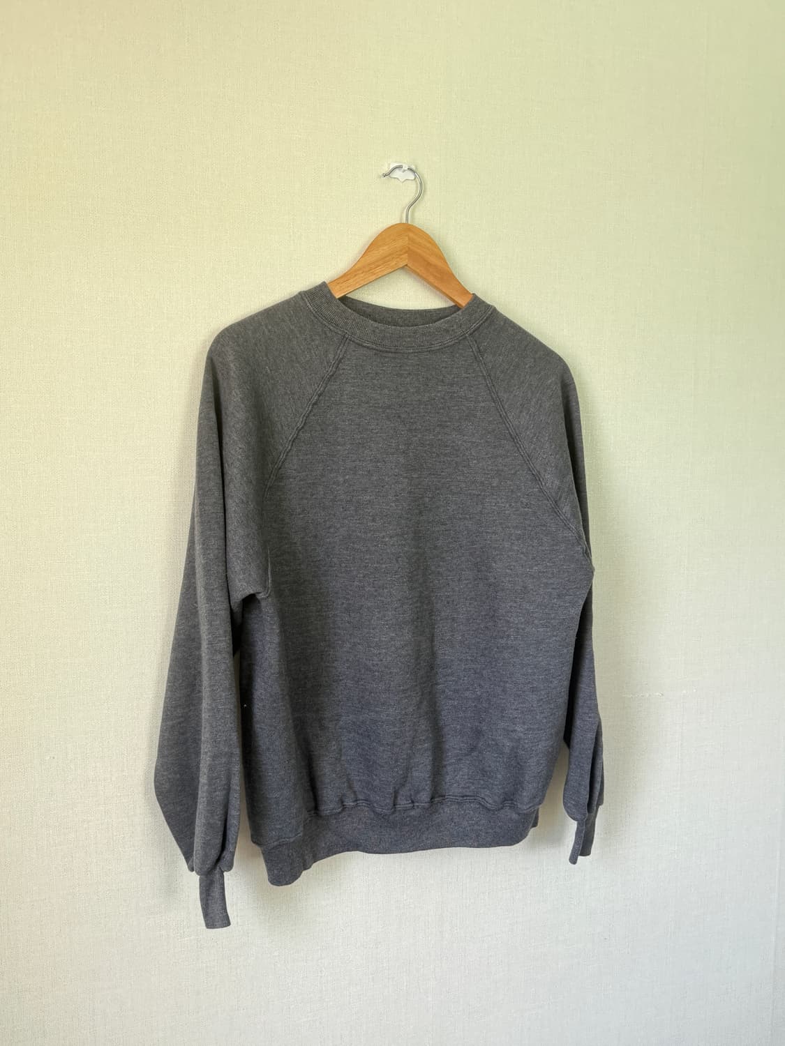 90년대 미국에서 생산된 플레인 스웻셔츠입니다. 어깨 레글런 패턴과 부드러운 원단감이 특징입니다. 짧뚱한 총장과 여유로운 핏에서 트렌디함을 느끼실 수 있습니다! • 어깨: 레글런 • 가슴: 56 • 총기장: 64 • 팔 길이: 레글런 빈티지 제품 특성상 세월에 따른 자연스러운 사용감이 존재합니다. 빈티지에 대한 이해도가 높으신 분들께 추천드리며, 민감하신 분들은 신중한 구매 부탁드립니다.