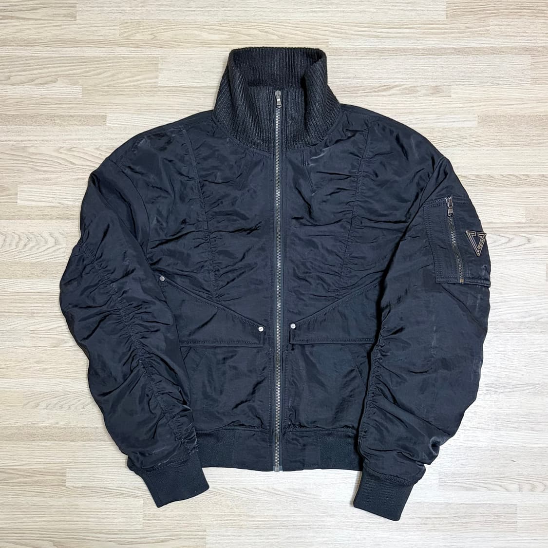 본바트 Highneck Bomber Jacket 색상: Black 사이즈: 1 - 전체적인 셔링 포인트 - 히든스냅 덮개, 외입술 포켓 디테일 - MA-1 스타일의 지퍼포켓 및 금속 와펜장식 - 몸판과 소매포켓 쪽 Lampo사 5호 지퍼 ✅실측 총장 63 어깨 61 가슴 60 소매 58