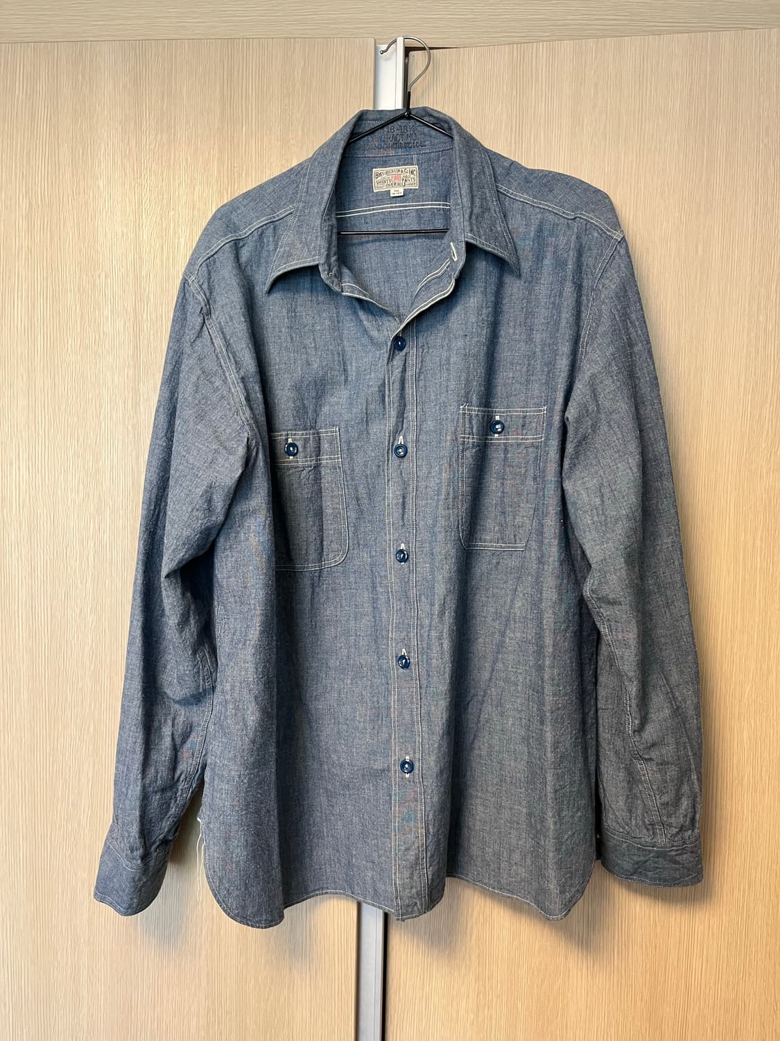 버즈릭슨 샴브레이 셔츠 XXL입니다. 24년 한여름에 구매해서 보관만 하다 작년에 조금 착용 후 사이즈감 바뀌어 판매합니다 세탁 할 정도로 입지 않아 세탁은 안했고 자연건조만 했습니다