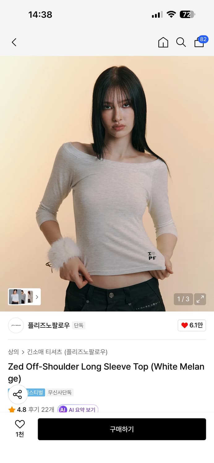 플리즈노팔로우 제드 오프숄더 롱 슬리브 탑