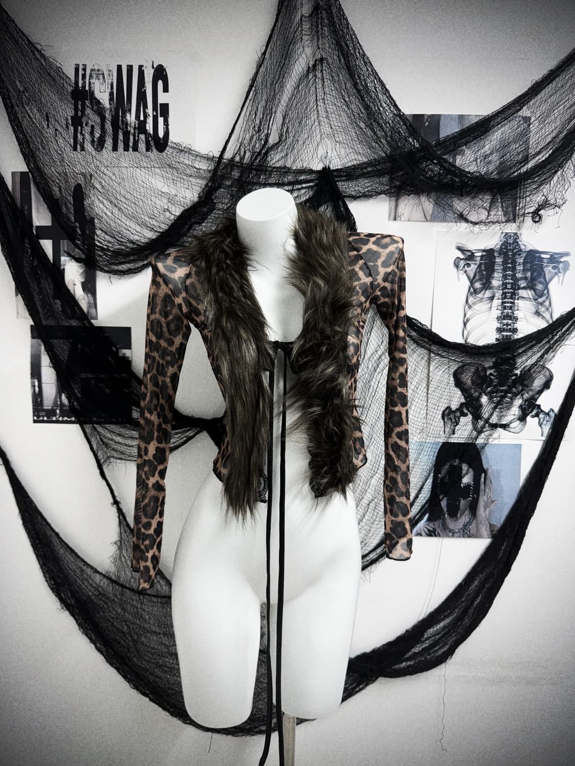 Leopard fur seethrough cardigan - 스판끼 있습니다. - 착용 시 이너와 함께 착용하거나, 단독으로 착용 시 끈을 꽉 매서 착용하는 것을 추천드립니다. Price 63,000 어깨단면 29 가슴단면 35 소매길이 57 총장 43