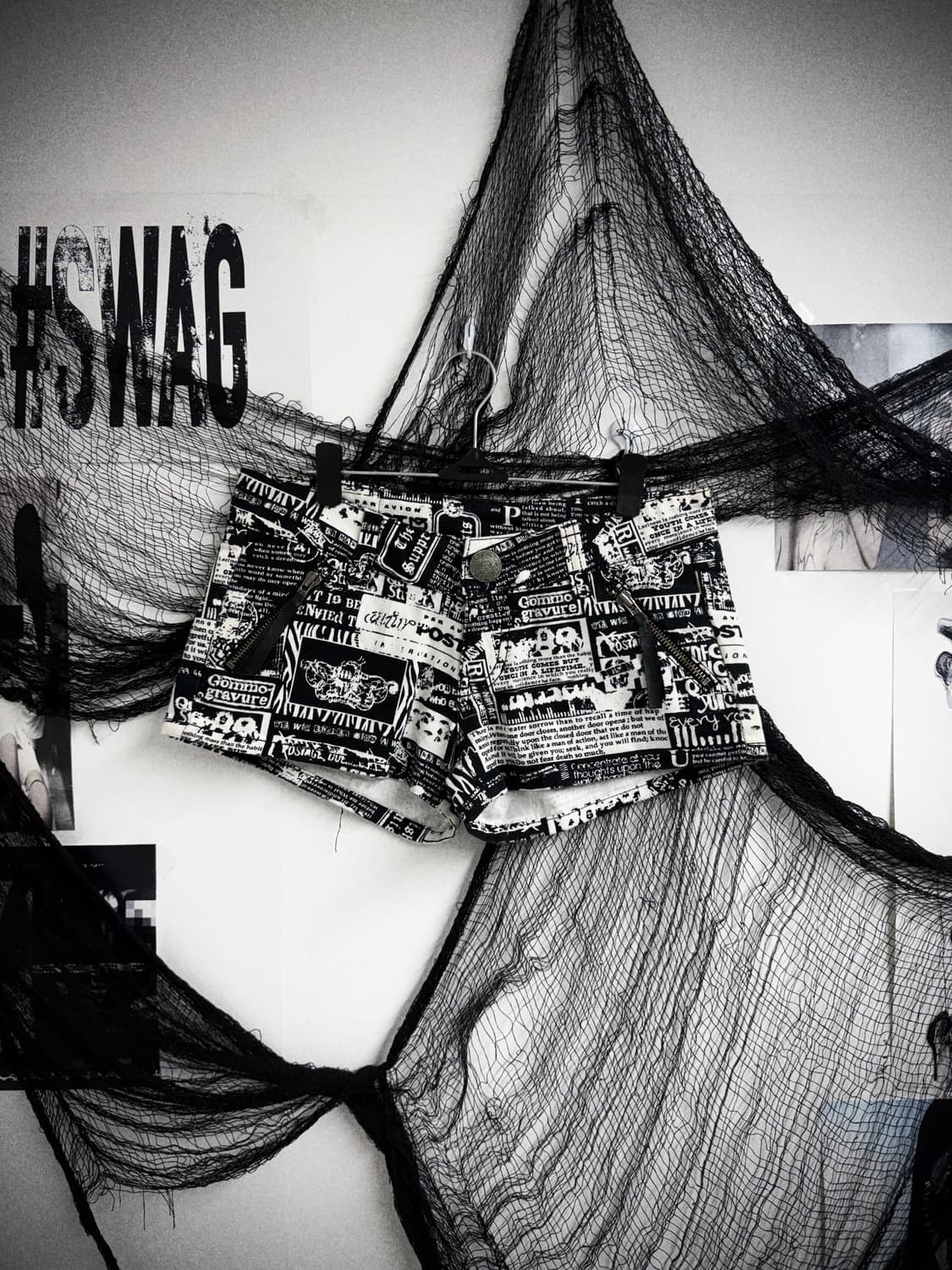 00s mood printing zipper shorts