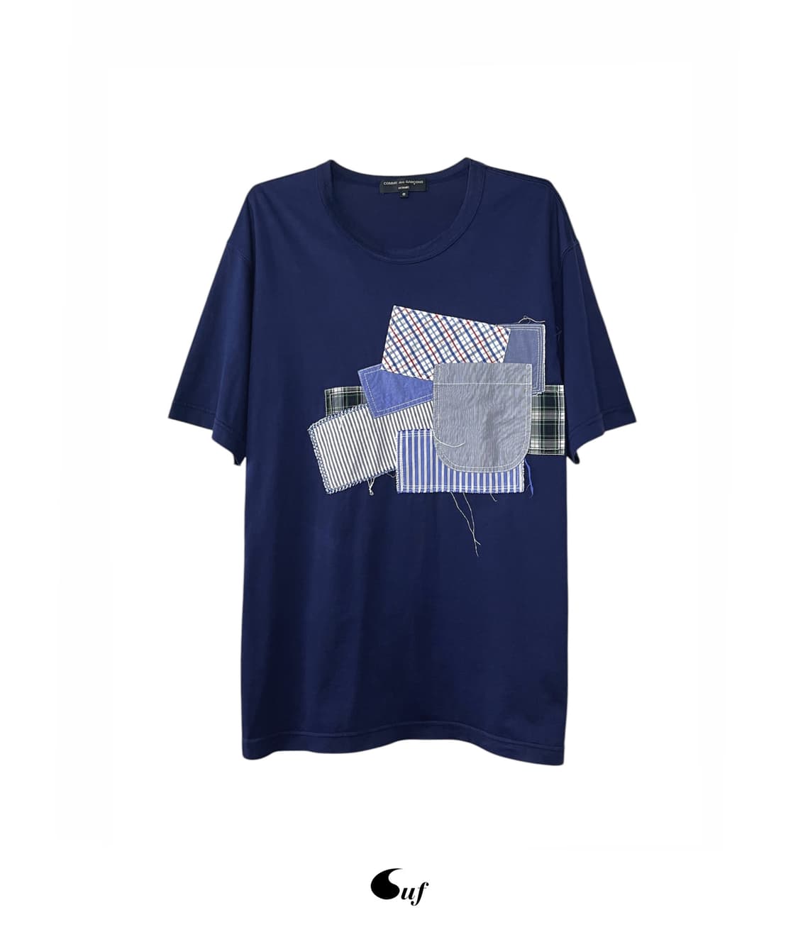 multi fabric patchwork pocket T-shirt Brand : COMME des GARÇONS - Label : COMME des GARÇONS HOMME by Junya Watanabe 2015 spring/summer Size : S - 총장 : 64.5 - 가슴 : 48.5 - 어깨 : 45.5 - 소매 : 21.5 • 전면 다양한 원단 로 엣지(raw edge) 패치워크 및 포켓 • 우측 소매 약간의 이염 • 후면 미세한 보풀