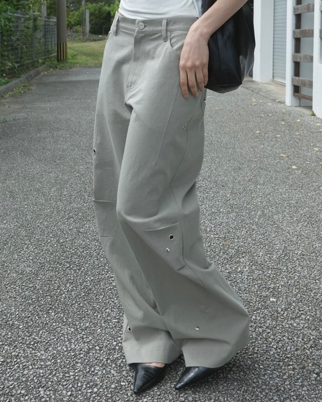 [KIJUN] Pleated Stud Pants Grey S사이즈 택 제거하지 않은 새 상품 현재 품절 상품입니다! 편하게 문의주세요 :)