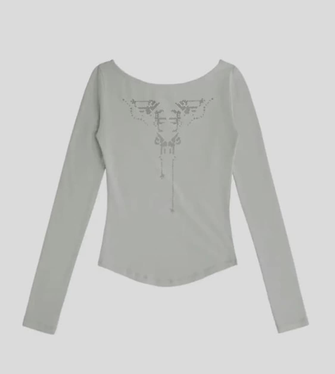 nache 나체 믹스드 레이어드 롱 슬리브 차콜