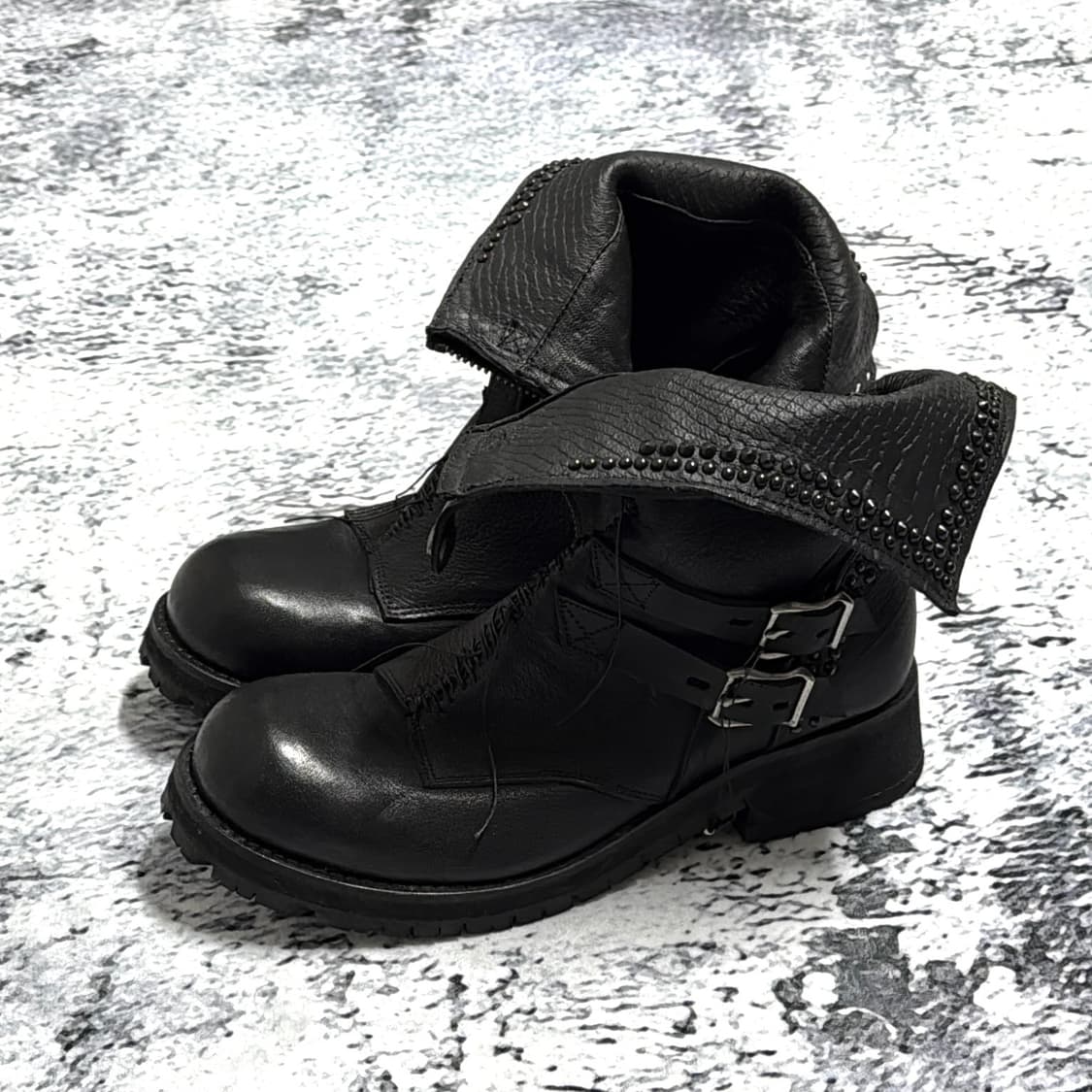 ꙳ KMRii Crush Short Boots ꙳ 소가죽, 버클 디테일 ꙳ 슈박스, 더스트백, 본품 구성 *홍보용 제품으로 현재는 판매하지 않습니다* Vkei 감성을 기반으로 한 일본 비주얼계 브랜드 KMRii 시그니처 부츠로, 다크하고 퇴폐적인 무드를 지향합니다. 가죽 소재와 금속 버클 디테일이 조화를 이루며 강한 존재감을 드러내는 부츠입니다. Condition : 10 Size : 42.5(270~275) ☥ MADE IN JAPAN INSTAGRAM : lusteinseoul ꙳ 후르츠패밀리, 인스타그램 @lustienseoul 팔로우 시 택배비 10,000원 무료 배송