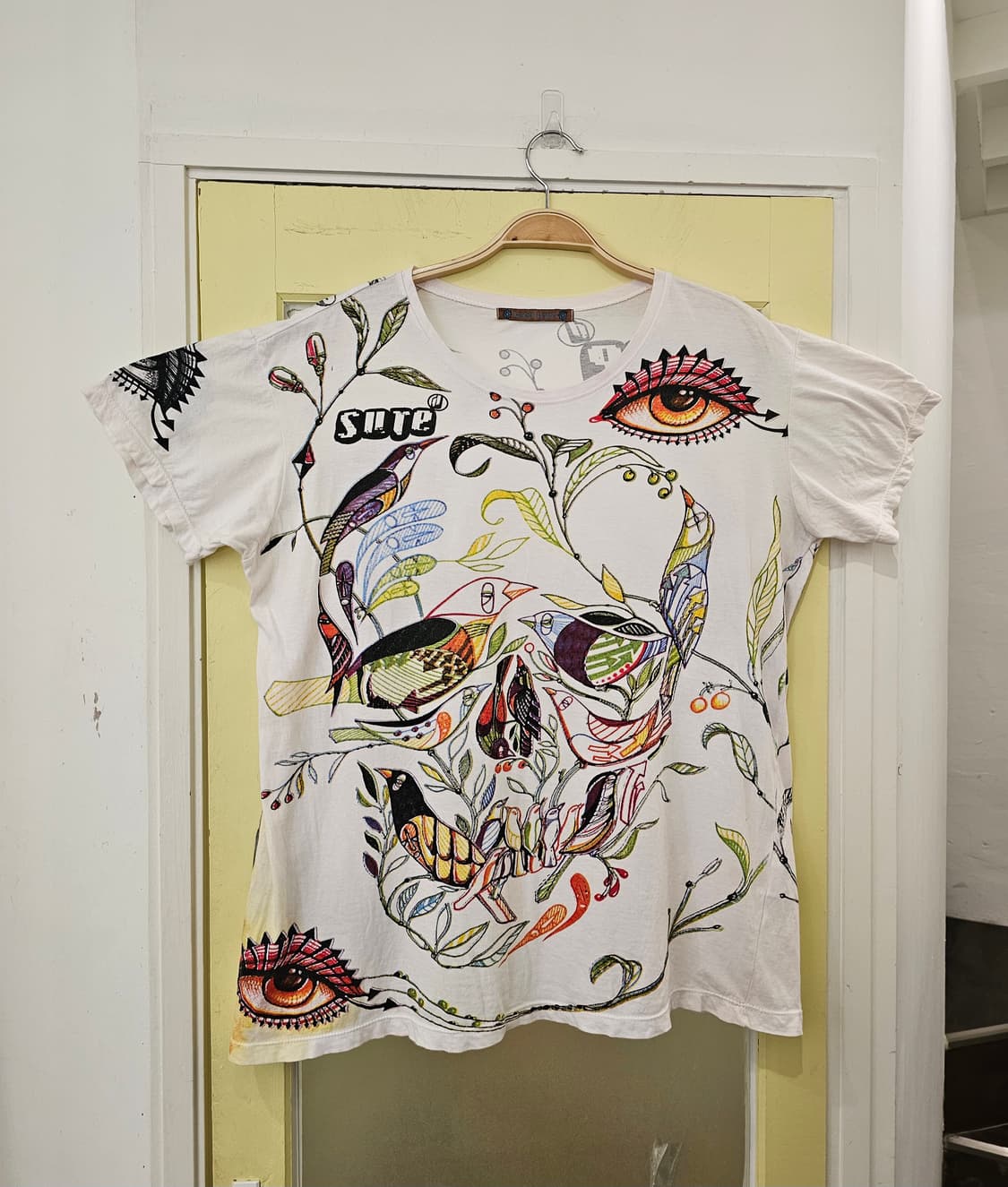 앞 뒤 컬러감 반전에 프린팅도 에스닉인듯 스컬 프린팅으로 여러 이미지 가득한 반팔입니다 소매엔 한쪽만 눈 프린팅 있고 프린팅 가득한 포인트 좋아하신다면 추천합니다 ✔️면100 ✔️Japan ♦️세탁 후 판매해도 빈티지 특성상 모든 제품이 완벽할 수 없습니다 그로 인해 교환, 환불은 어려우니 참고해주세요 ♦️10만원 이하 배송비3,000/제주6,000 입니다