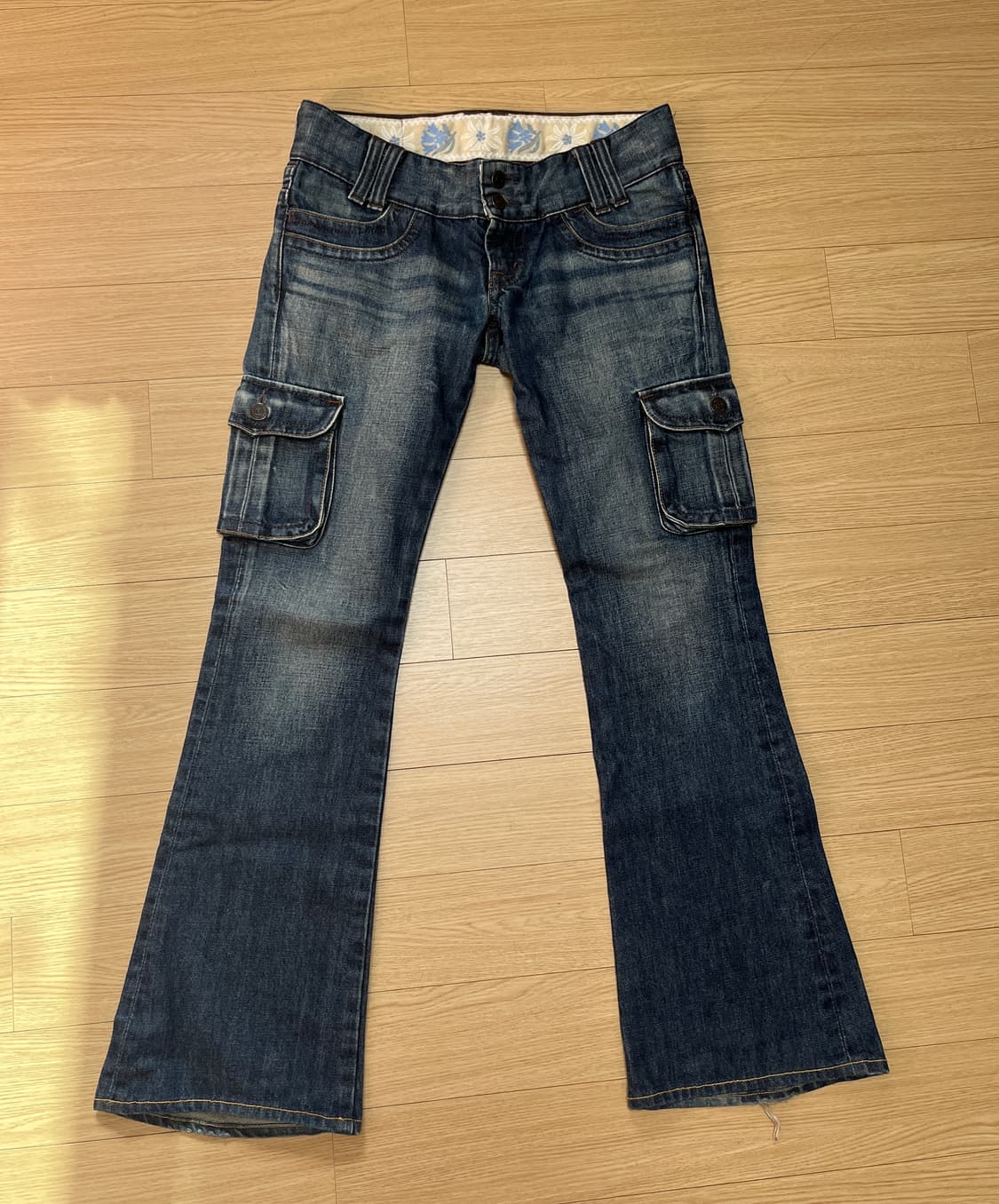 로우웨이스트 부츠컷 청바지 입니다! 실제로 보면 너무 예쁘고 상태도 엄청 좋아요 빈티지로 구매후 실착은 2번 정도 했어요 사이즈는 아래 참고해주세요 🤍 기장 93cm 밑위 19cm 허리단면 25cm